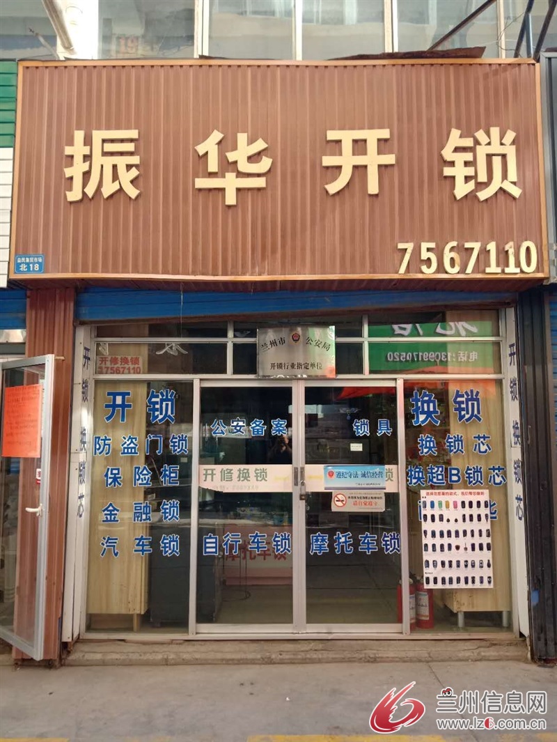 振华开锁 (座机电话0931-7567110)成立于2004年8月。是经工商局注册、税务局登记、公安局备案的正规、合法开锁服务部。专业从事兰州开锁、兰州安宁开汽车锁、兰州会宁路换C级锁芯、兰州城关区换锁芯、兰州西站换锁、兰州七里河开保险柜、兰州开金库门、兰州开取款机、复制各类ID卡。除服务本地区外还远到玛曲、平凉、康乐、海石湾、窑街、永靖、白银等地开金库门及保险柜。到西宁、 玛曲、陇南、平凉、河西堡、通渭、西和、永靖等地开ATM取款机。兰州黄河桥保险柜唯一指定维修部。提供金融锁具、保险柜锁具、防盗门锁具、锁芯、各类文件柜锁。